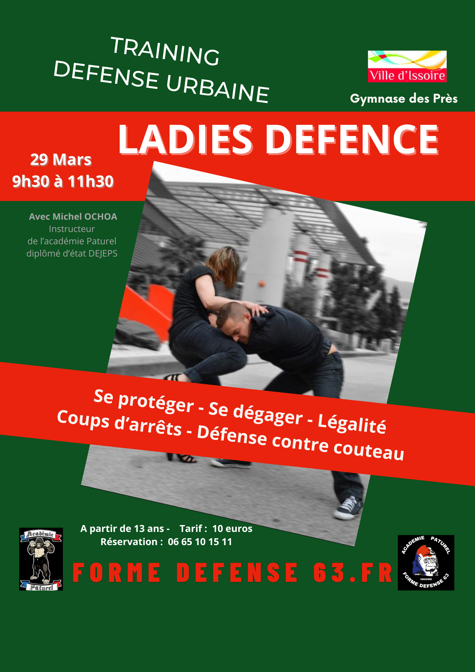 défense urbaine, TIOR, feminine, journée internationale de la femme, self/defense féminine, protection rapprochée, kravmaga, sport de combat, arts martiaux, académie PATUREL, gymnase des près Issoire
